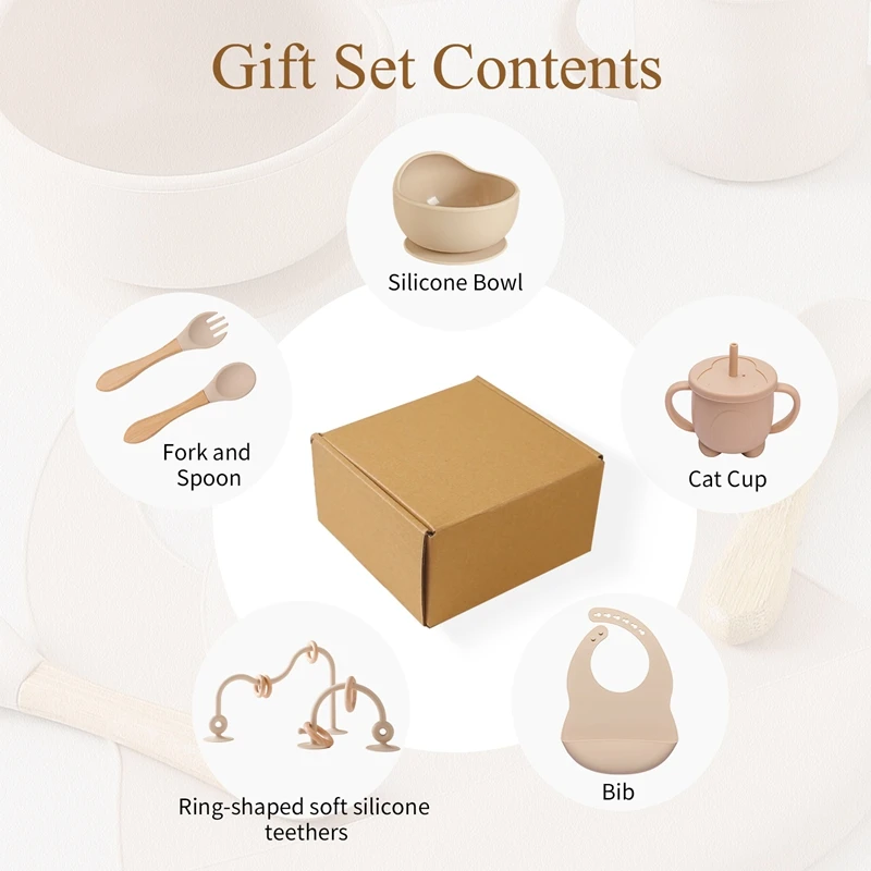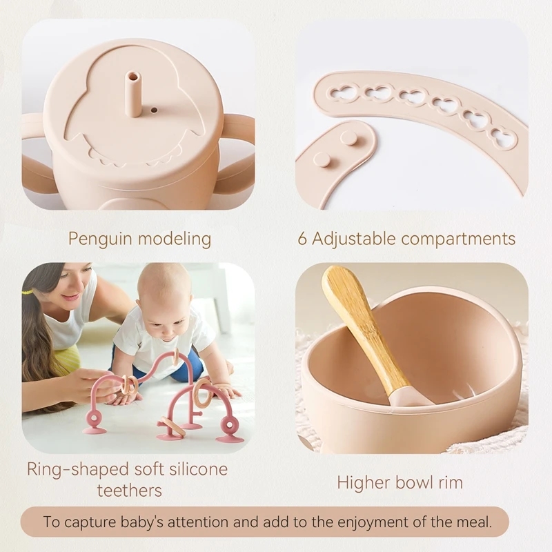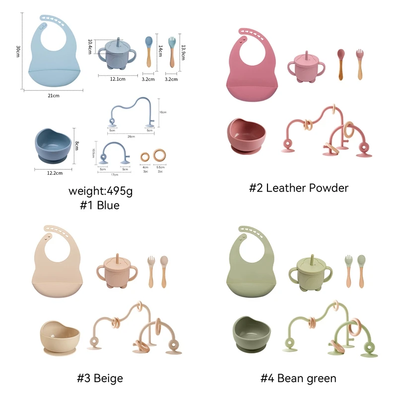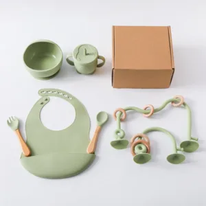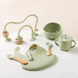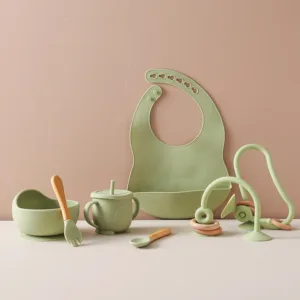Be the first to review “Baby Silicone Tableware Set BPA Free Silicone Non-Slip Feeding Bowl Cup Bibs Wooden Handle Spoon Fork Newborn Feeding Dishes Set” Cancel reply